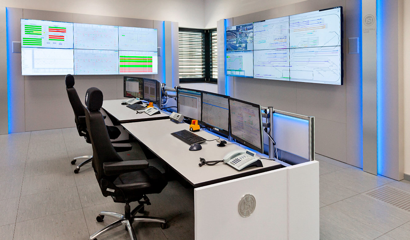 Whether simulated extreme conditions or realistic prerequisites – hardware and software of railway systems from Siemens are thoroughly inspected in the Wegberg-Wildenrath Test and Validation Center. A track system over 30 kilometres long is available there. Static and dynamic tests are performed on vehicles and systems 365 days a year. A task that requires a perfectly equipped control center for monitoring. With the support of the experts of JST – Jungmann Systemtechnik® a control room could be realised, which meets all requirements.