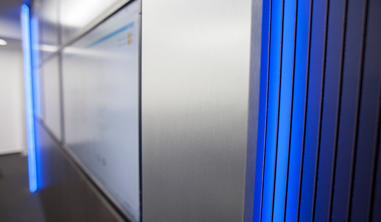 The monitor wall can perform several tasks at once. On the one hand, it serves the control room staff in monitoring and controlling the individual systems, as well as being a team player in joint troubleshooting and analysis. On the other hand, there is a direct view of the Videowall from an adjoining multi-functional room. In the event of a crisis, an emergency team can access the large display screen without disrupting operations in the actual control center. “The perfect solution,” according to Kai Timmermann.