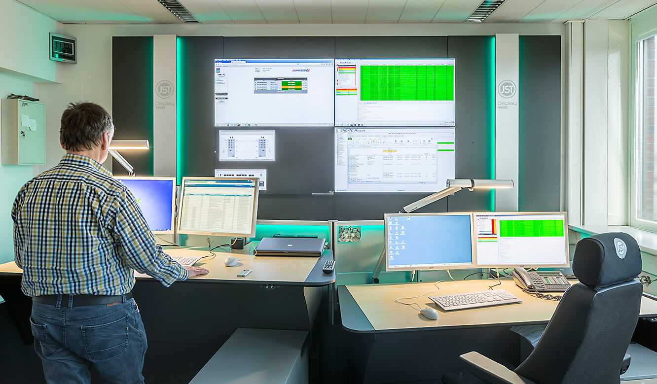 Auch für die Mitarbeiter im neuen Leitstand sind die Vorteile der JST-Produkte täglich spürbar: Positive ergonomische Aspekte konnten durch die speziell für Kontrollräume entwickelten Stratos Operator-Pulte realisiert werden, die unter anderem durch eine stufenlos elektromotorische Höhenverstellung und einen großzügig bemessenen beleuchteten Versorgungsraum überzeugen. Spezielle Leitstellenstühle aus dem JST Programm komplettieren das Thema „Ergonomie“. „Die Kollegen sind sehr zufrieden“, weiß Klaus Greiser zu berichten.