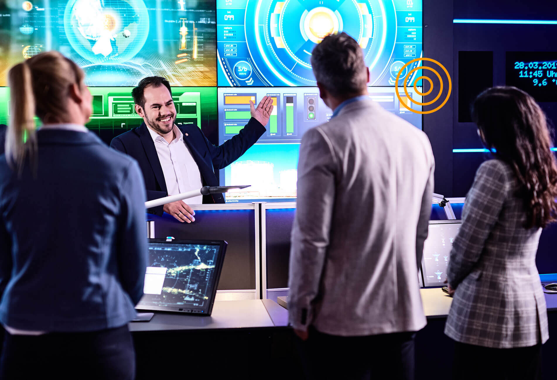 In the control room simulator, you can plan the control center of tomorrow already today. A realistic practical check with demonstrations of intuitive KVM technology, interactive tests of operating concepts and visualisation systems, as well as answers to questions about ergonomics and workplace design. Experience live simulations in a workshop setting that is unique in Europe!