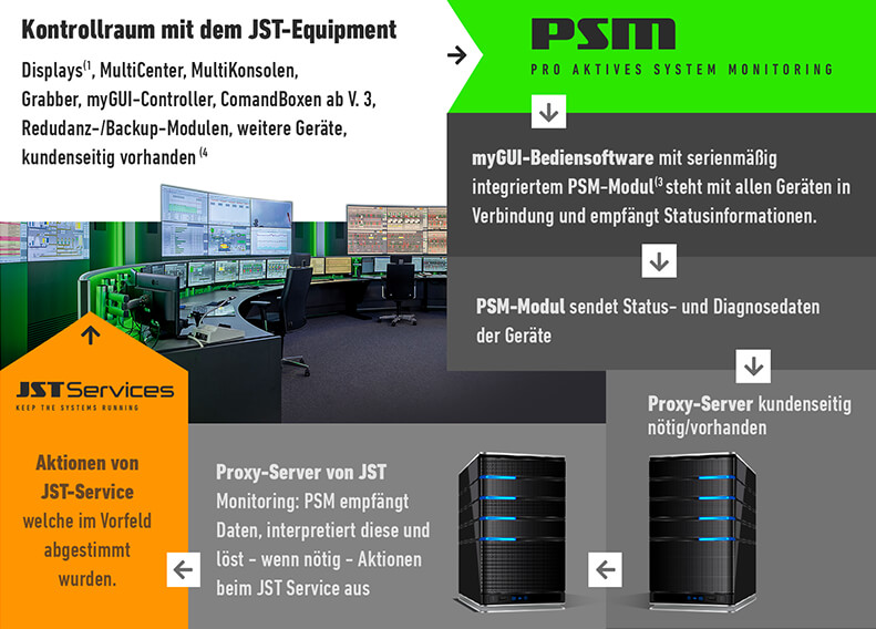 Ob TeamView auf der neuen DisplayWall, die intuitive Benutzeroberfläche der myGUI® User-Plattform oder die verbesserte Übersicht durch selbstgewählte Dashboards mit der CockpitView® Software – an jeder Stelle der JST Gesamtkonzeption gehe es darum, Informationen so aufzubereiten, dass der Anwender durch verbesserte Übersicht und flexible Zugriffsmöglichkeiten bei seiner Monitoring-Tätigkeit unterstützt wird. „Mit der KVM-Lösung MultiConsoling® schalten wir flexibel alle gewünschten Quellen auf und sparen so Bildschirme ein. Bei JST hat uns eindeutig die Benutzerfreundlichkeit überzeugt – das war ein wesentliches Kriterium“, resümiert Sebastian Schirmel.